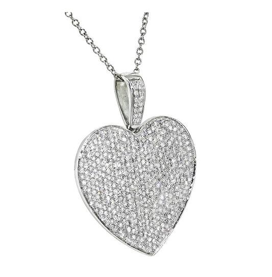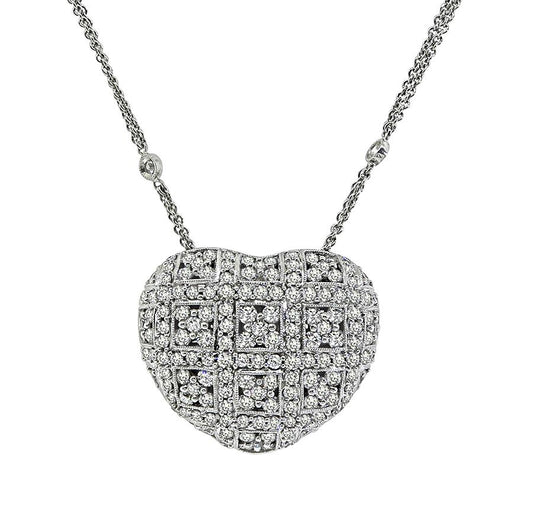 Estate 3.75ct Diamond 18k White Gold Heart Pendant Necklace