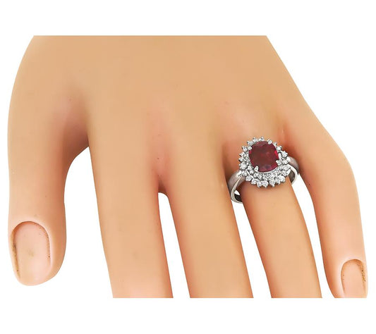 Estate GIA Certified 1.36ct Ruby 0.40ct Diamond Platinum Ring