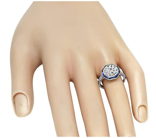 Estate 2.08ct Diamond Sapphire Platinum Engagement Ring
