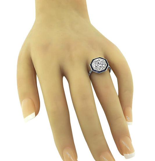 Estate GIA Certified 4.01ct Diamond Sapphire Platinum Engagement Ring