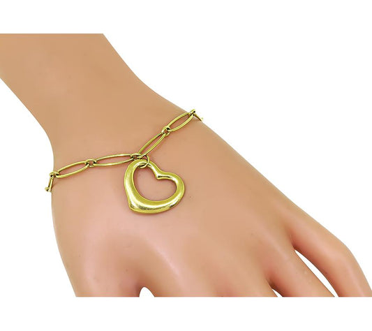 Estate Tiffany & Co 18k Yellow Gold Heart Charm Bracelet