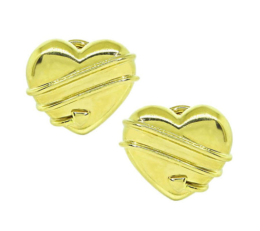 Estate Tiffany & Co 18k Yellow Gold Heart Pendant Necklace and Earrings Set
