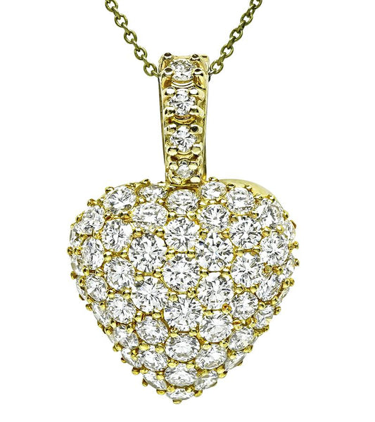 Estate 4.00ct Diamond Gold Heart Pendant Necklace