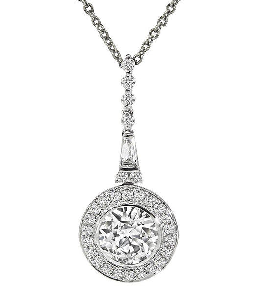 Estate 1.28ct Center Diamond 18k White Gold Pendant
