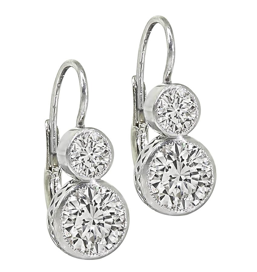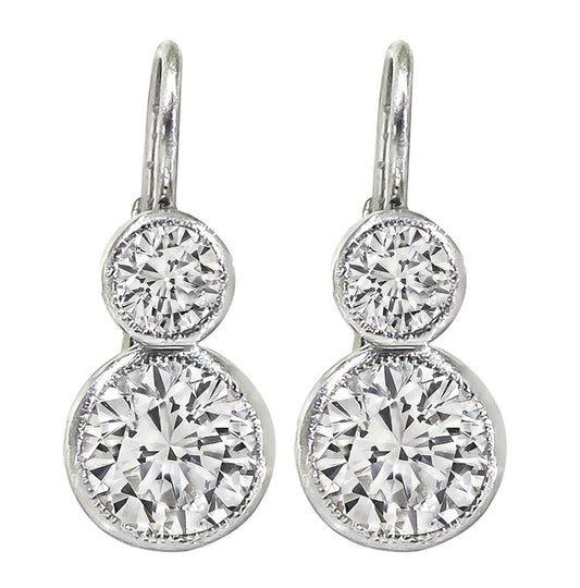 Estate 2.00ct Round Cut Diamond 0.50ct Old Mine Cut Diamond Platinum Earrings
