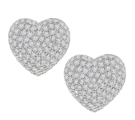 Estate 5.00ct Diamond 18k White Gold Heart Earrings