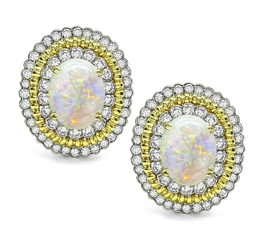 Estate Opal 3.00ct Diamond 18k Gold Earrings