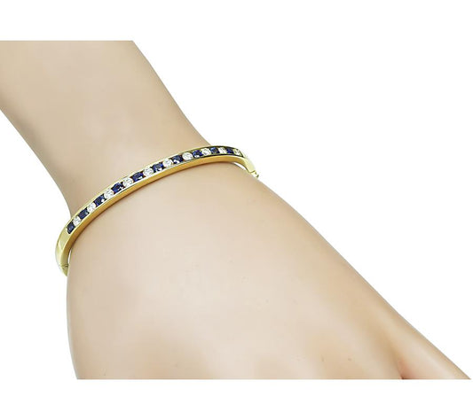 Estate 1.00ct Sapphire 1.00ct Diamond 18k Gold Bangle