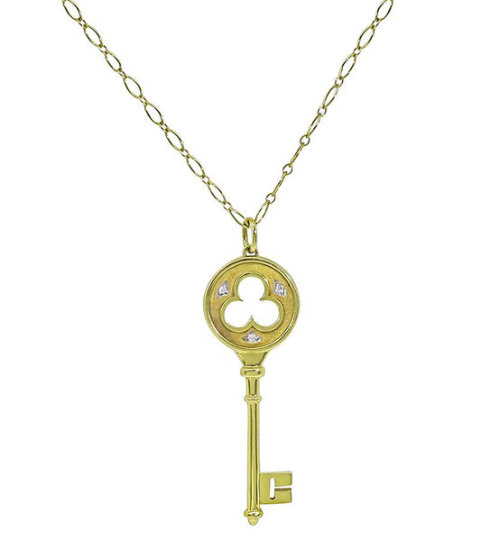 Estate Tiffany & Co Diamond 18k Yellow Gold Key Pendant Necklace
