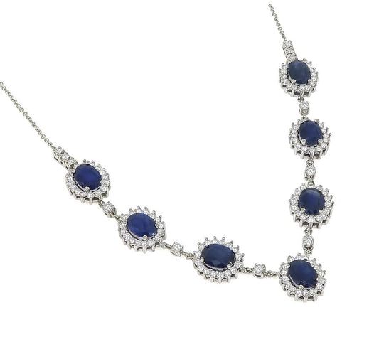 Estate 10.50ct Sapphire 2.25ct Diamond 14k White Gold Necklace