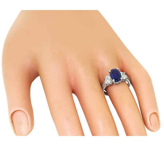 Estate 3.00ct Sapphire 1.00ct Diamond Platinum Engagement Ring