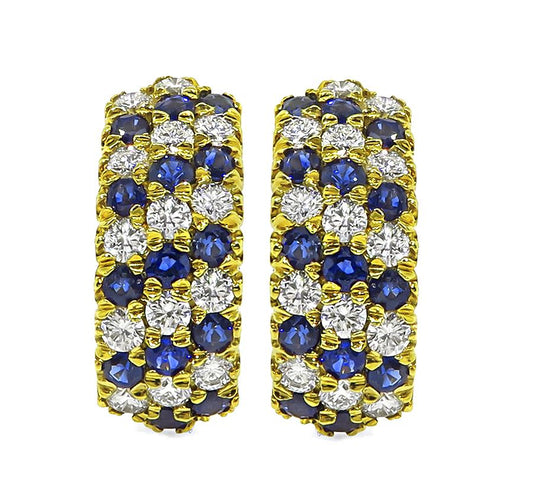 Estate 1.40ct Sapphire 1.40ct Diamond 18k Yellow Gold Earrings