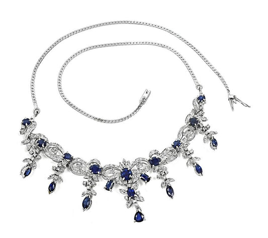 Estate 9.00ct Sapphire 1.50ct Diamond 14k Gold Necklace