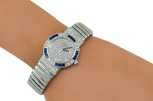 Estate Roberge 2.00ct Diamond 0.75ct Sapphire White Gold Quartz Watch