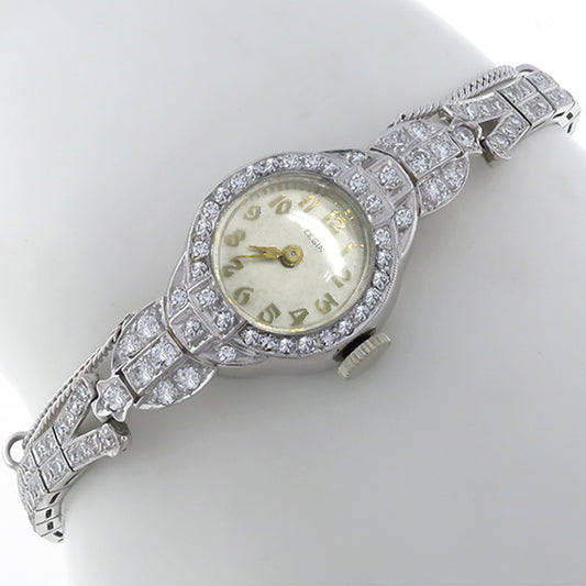 Art Deco Elgin 4.50ct Diamond Platinum Gold Watch