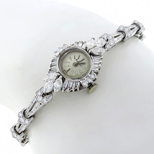 Art Deco Hamilton 4.00ct Diamond Platinum Watch