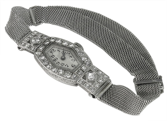 Art Deco Hamilton 4.00ct Diamond Platinum Watch