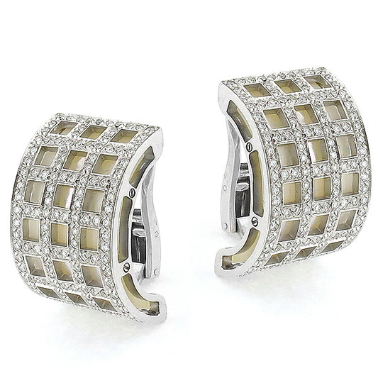 David Morris 3.00ct Round Cut Diamond Mother of Pearl 18k White Gold Earrings