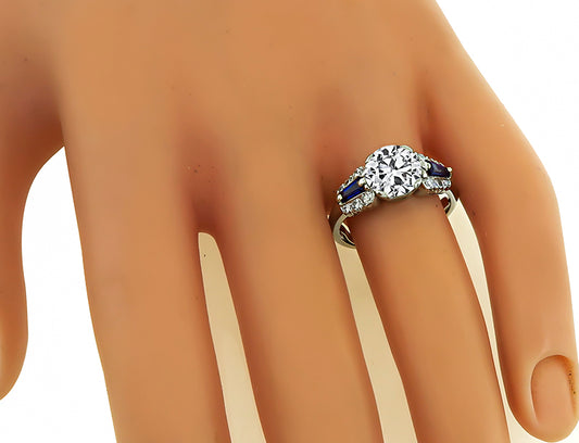 Estate 1.73ct Diamond Sapphire Engagement Ring