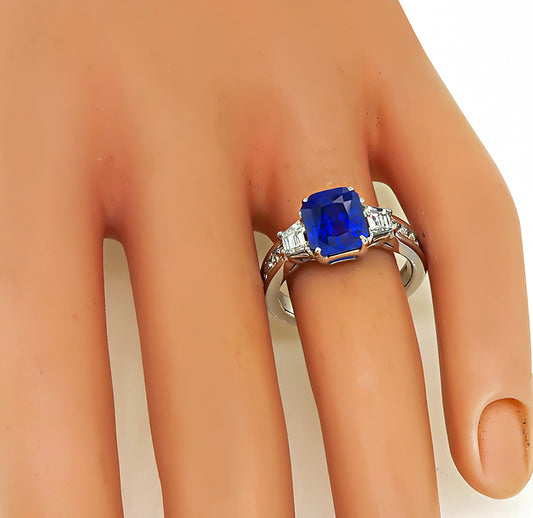 Estate 4.55ct Sapphire 0.50ct Diamond Engagement Ring