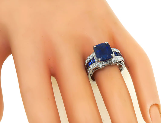 Estate 3.98ct Sapphire 0.80ct Diamond Engagement Ring