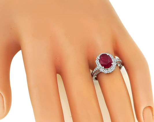 Estate AGL Certified 2.03ct Burmese Ruby 0.67ct Diamond Engagement Ring