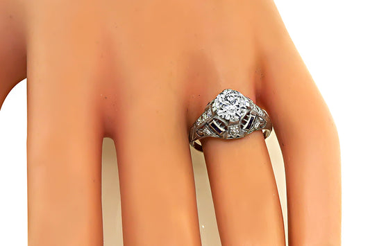 Art Deco 1.52ct Diamond Sapphire Engagement Ring