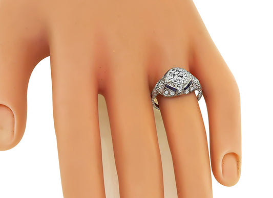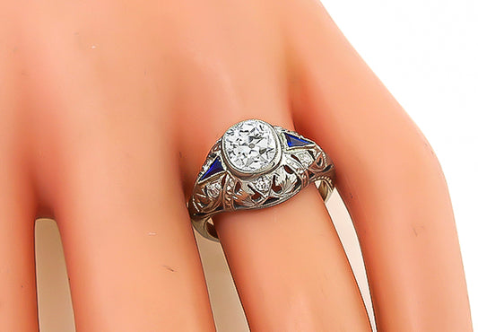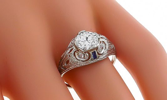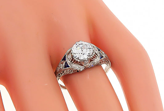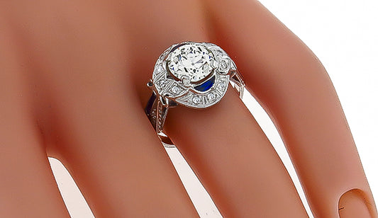 Vintage GIA Certified 1.16ct Diamond Sapphire Engagement Ring