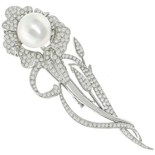 White South Sea Pearl and Diamond 18k White Gold Flower Pin