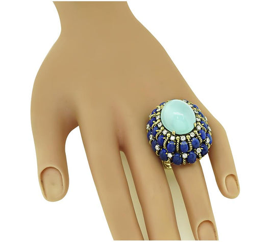 Vintage Persian Sleeping Beauty Turquoise Lapis Diamond Gold Ring