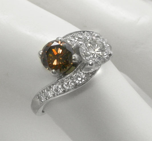 0.75ct Round Natural Fancy Brown and 0.64ct Round White Diamond Ring