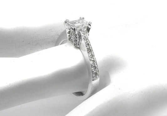 0.75ct Princess Cut Diamond Platinum 18k Gold Diamond Pavè Set Engagement Ring