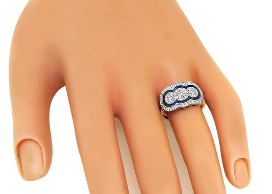 Estate GIA Certified 0.92ct Diamond Sapphire Engagement Ring