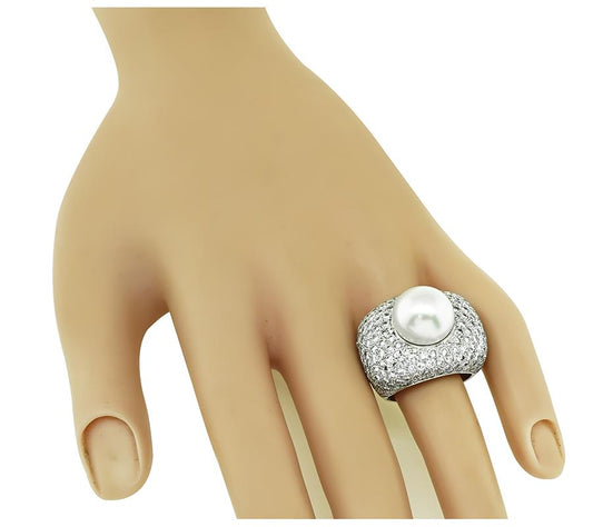 Estate South Sea Pearl 4.50ct Diamond Gold Ring
