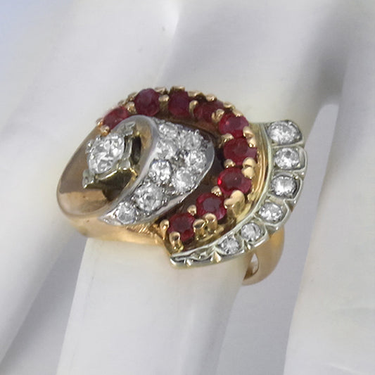Retro Diamond Ruby 14k Gold Ring
