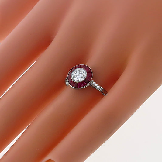 GIA 0.59ct Diamond Ruby Engagement Ring