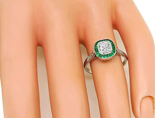 Estate 1.01ct Diamond Emerald Engagement Ring