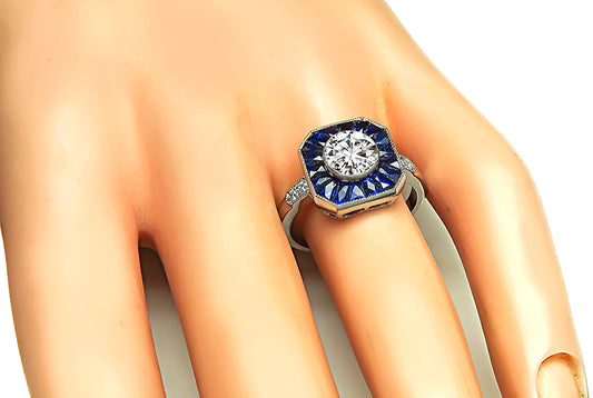 Art Deco 1.52ct Diamond Sapphire Engagement Ring