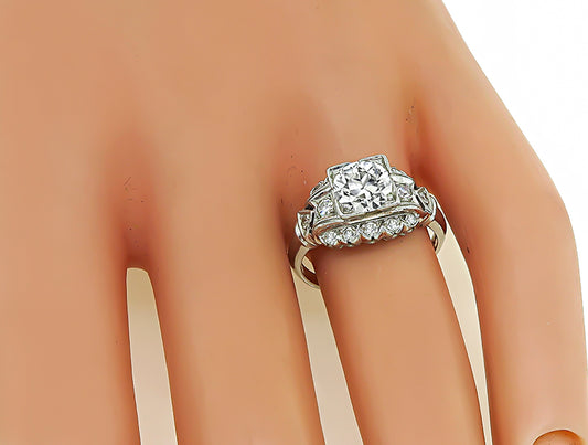 Estate 0.68ct Center Diamond 0.53ct Diamond Engagement Ring