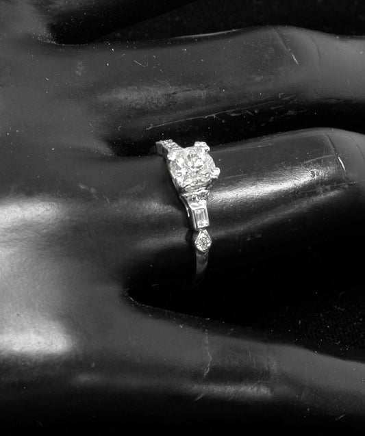 Art Deco 0.70ct Old Mine Diamond Platinum Engagement Ring