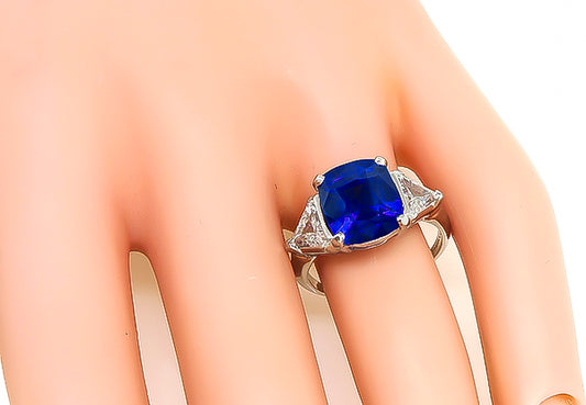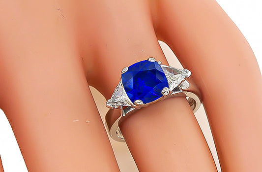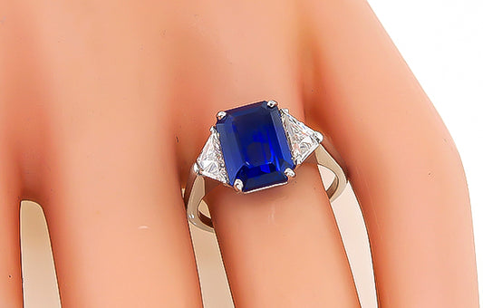 Vintage 4.54ct Ceylon Sapphire Diamond Engagement Ring