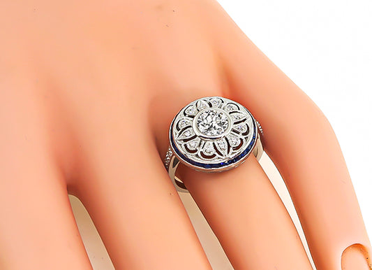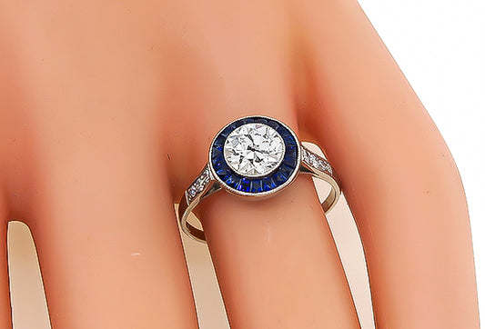 Antique Art Deco 0.75ct Old European Diamond Sapphire Platinum Engagement Ring