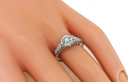 Estate 0.81ct Old Mine Cut Diamond Solitaire Platinum Engagement Ring