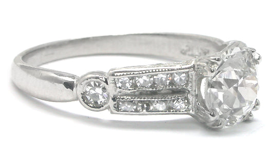 Art Deco 1.53ct Round Diamond Platinum Engagement Ring