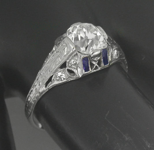 Art Deco 1.51ct Diamond Sapphire Platinum Engagement Ring