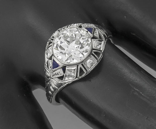 Art Deco 2.42ct Diamond Sapphire Platinum Engagement Ring