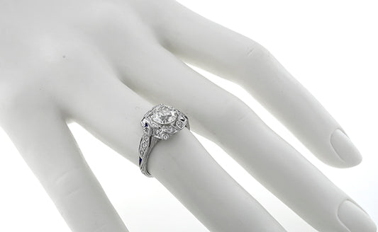 Art Deco 1.33ct Diamond & Sapphire Platinum Engagement Ring