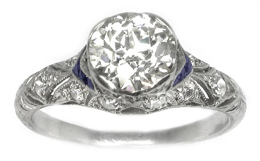 1.50ct Art Deco Platinum Diamond and Sapphire Engagement Ring