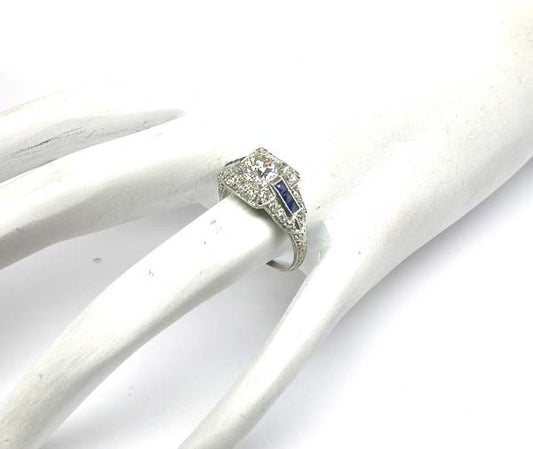Art Deco 1ct Diamond & Sapphire Platinum Engagement Ring