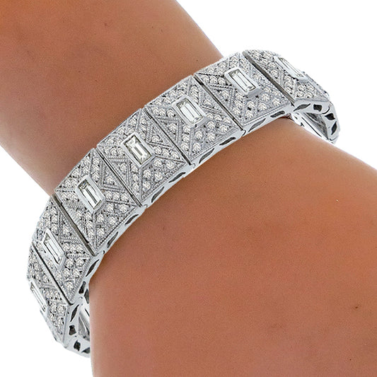 Estate 3.00ct Baguette And 5.40ct Round Diamond 18k White Gold Bracelet